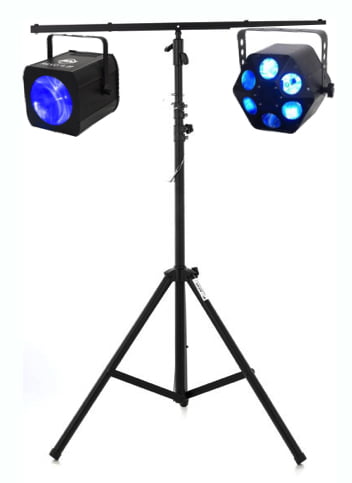 Includes 1 x ADJ Quad Phase HP and 1 x ADJ Revo 4 and 1 x lighting stand to mount them on.